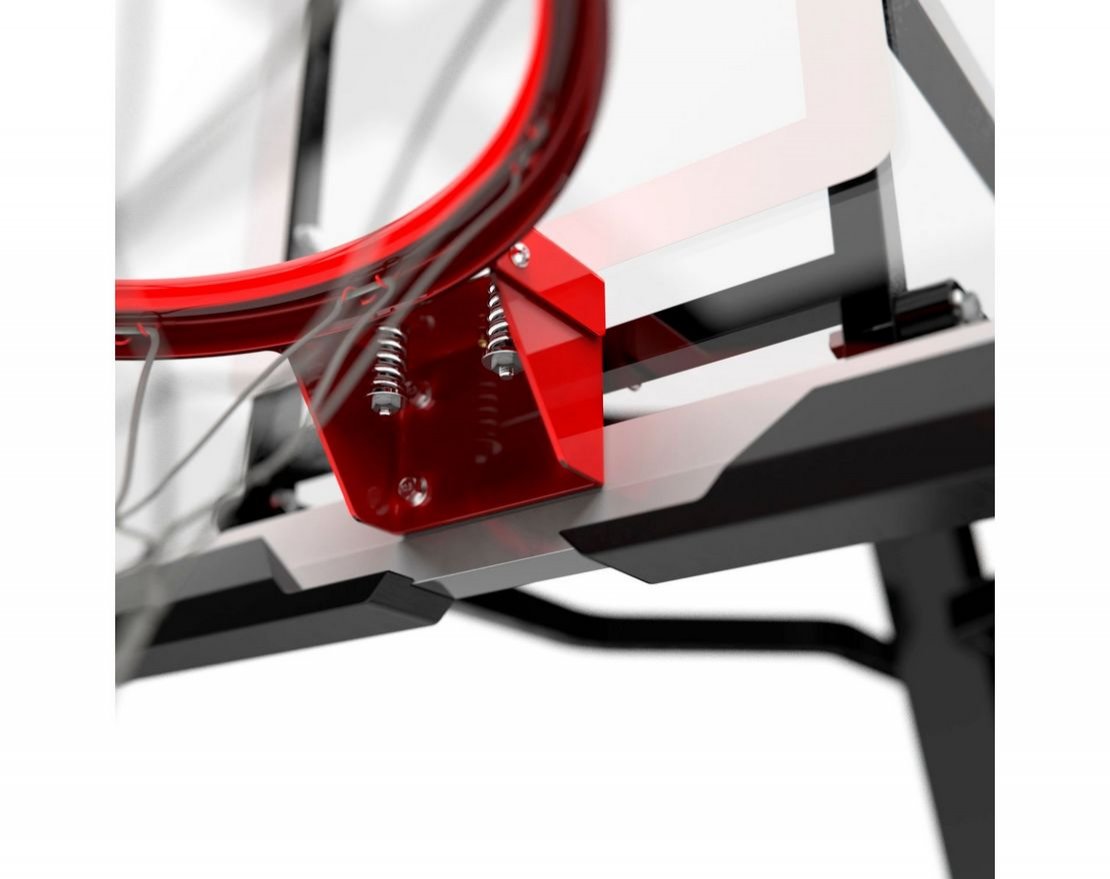 Портативная баскетбольная стойка совмещает в себе мобильность и обеспечивает отскок мяча, как на профессиональной площадке. Благодаря усиленной конструкции удалось добиться увеличенного вылета щита, при сохранении компактности размещения. Он регулируется в диапазоне от 230 до 305 см, имеет защитное покрытие Poly Pade в нижней части. В основание стойки (объем 114,7 л) необходимо залить воду или засыпать песок в качестве утяжелителя.