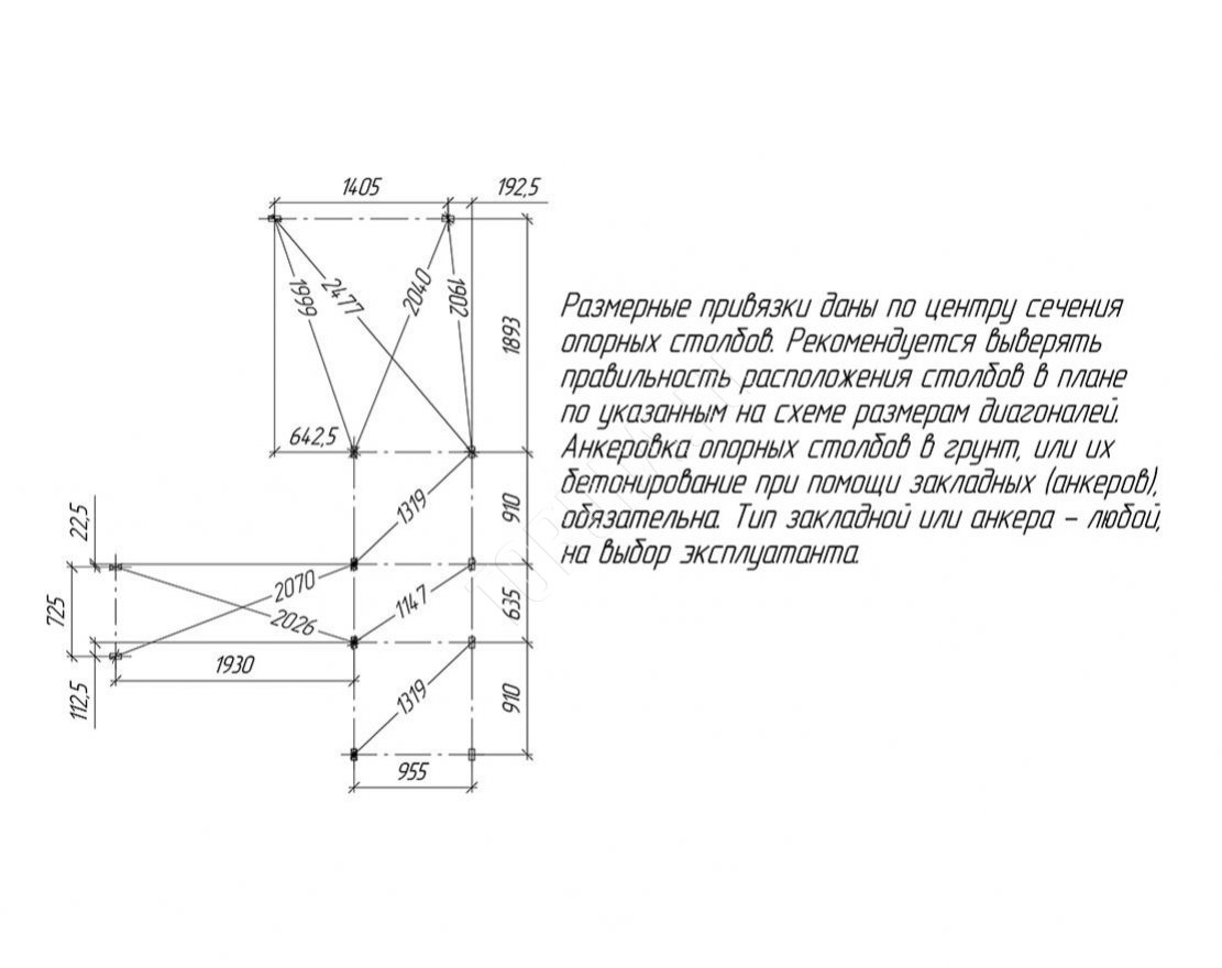 Для установки данной площадки рекомендуется закрепить её анкерами (6 шт). Анкера в комплект не входят, приобретаются дополнительно.